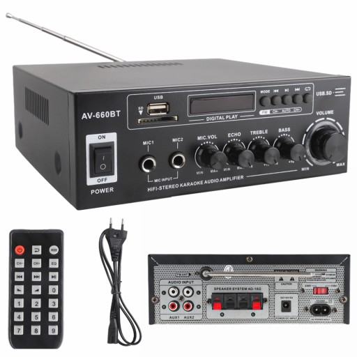 ✔️Dwa wejścia sygnałowe: sygnał DVD i sygnał AUX. SD, USB, 2 wejścia mikrofonowe.