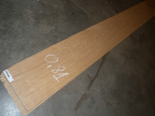 Liść forniru dębu europejskiego o grubości liścia 0,6 mm. Liście mają wzór flader. Wymiary liścia