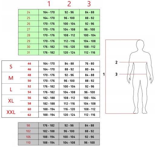 1. Obwód w klatce (nie dotyczy spodni do pasa)
