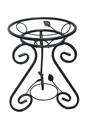 Oferujemy do sprzedaży kwietnik stojący na jedną donicę wykonany z metalu. Dostępny w kolorze czarnym. Ozdobiony bardzo delikatnymi listeczkami dodającymi uroku. Zaokrąglone nóżki nie rysują powierzchni. Doskonały na paprocie i kwiaty wiszące ze względu na swoją wysokość.