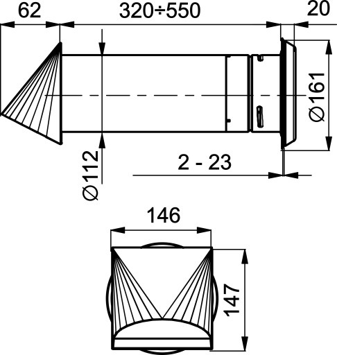 Nawietrzak ma budowę teleskopową, a zakres regulacji wynosi od 320 mm do 550 mm.