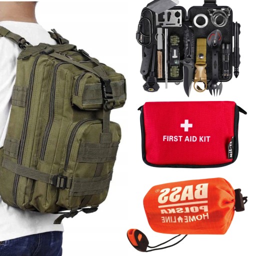 PLECAK TAKTYCZNY 35L + ZESTAW SURVIVALOWY 32w1 + ŚPIWÓR TERMICZNY + APTECZKA 21 el