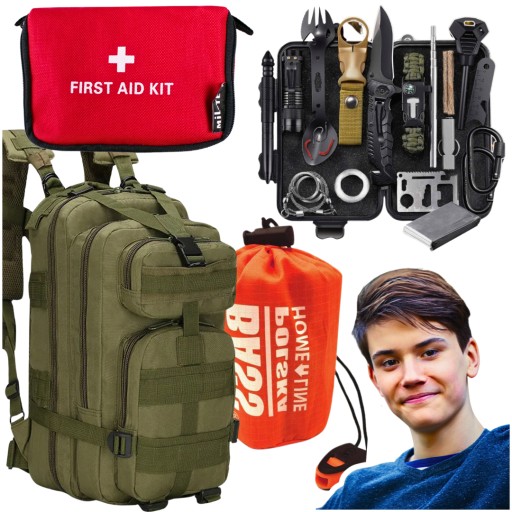BESTSELLEROWY ZESTAW PRZETRWANIA 2024 + PLECAK 35L + ŚPIWÓR TERMICZNY + APTECZKA