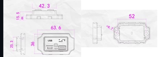- Ładowarkę montażową USB z dwoma gniazdami USB (PD QC3.0) z kablami zasilającymi