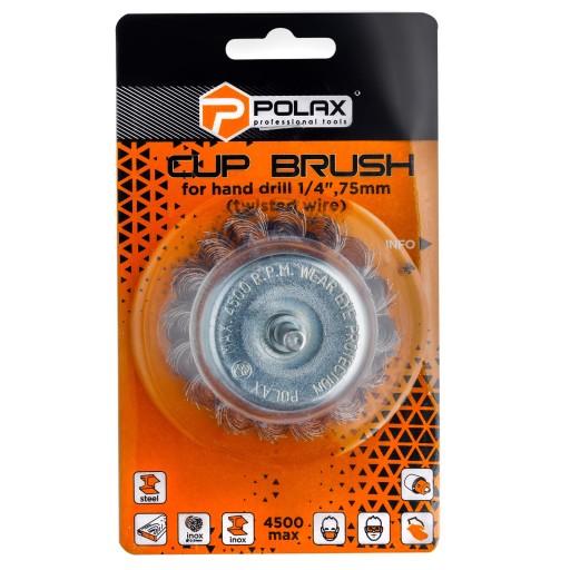 ПЕРЕДНЯЯ ЩЕТКА POLAX ДЛЯ СВЕРЛ С ХВОСТОВИКОМ 1/4", ГЛАДКАЯ ПРОВОЛОКА 75 ММ