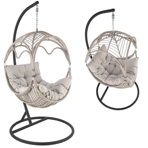 Fotel wiszący kokon technorattan z poduchą RASMUS JASNY POPIEL firmy Halmar