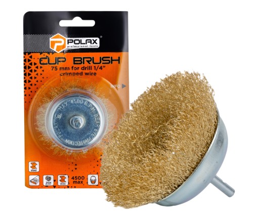 POLAX SZCZOTKA CZOŁOWA DO WIERTARKI Z TRZPIENIEM 1/4" DRUT FALISTY 100MM