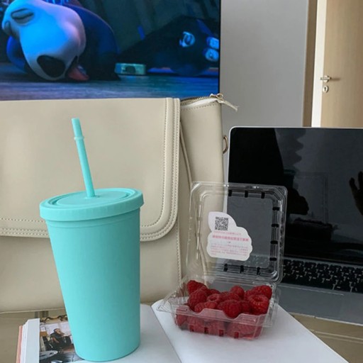 Двойная пластиковая чашка с соломенными кофейными кружками ярких цветов