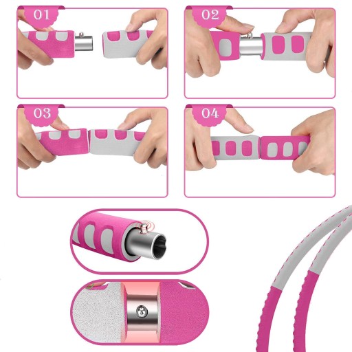 Hula hop składa się z 8 elementów, które łatwo składa się i rozkłada, dzięki temu z łatwością możesz złożyć koło po skończeniu ćwiczeń i przetransportować koło.