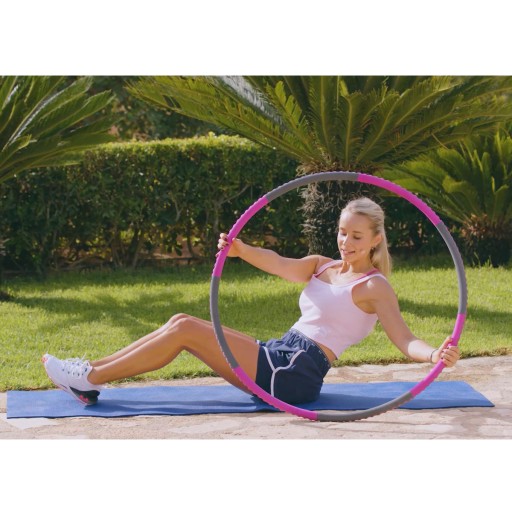 Hula Hop składa się z 8 części, dzięki czemu nie zajmuje sporo miejsca, a dodatkowo można je zabrać np. w podróż bez konieczności przerywania systematycznych ćwiczeń.