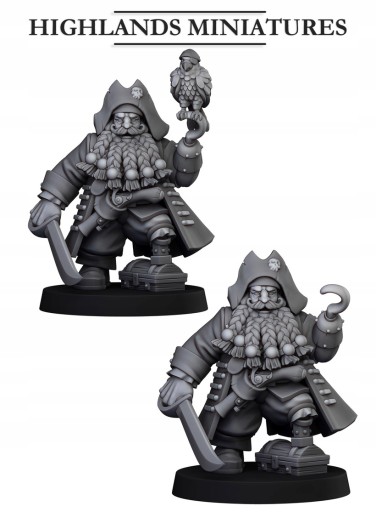 Przedmiotem oferty jest pojedynczy model Dwarf Pirates Captain od Highlands Miniatures , wydrukowany na drukarce 3D w technologii SLA.