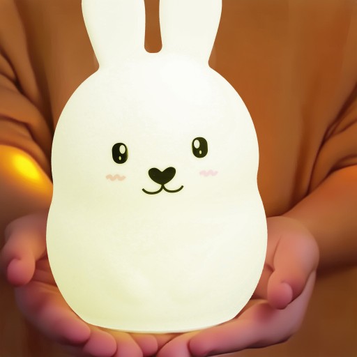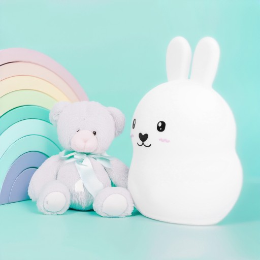 LAMPKA NOCNA DLA DZIECI królik LED silikonowy z pilotem 3 tryby świecenia