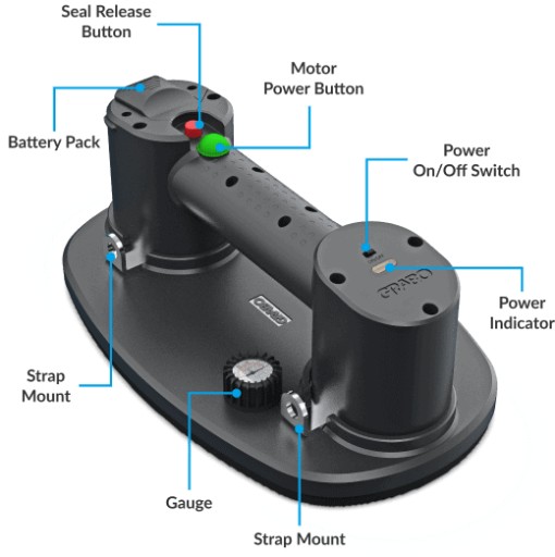 GRABO - elektryczny podnośnik przyssawkowy do drewna, suchej zabudowy, granitu, marmuru, blachy, szkła (wzorzyste lub gładkie), płytek.