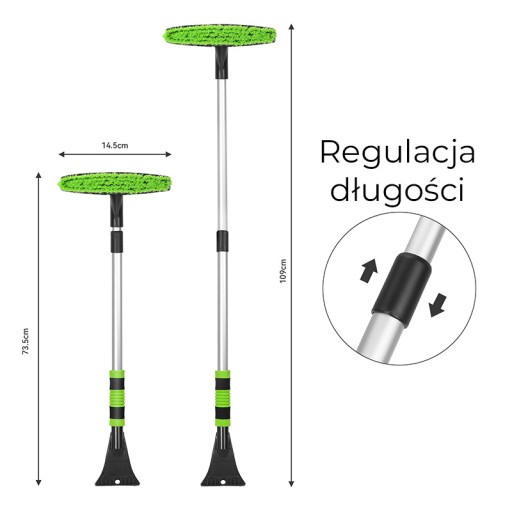 ✅ Teleskopowy trzon - daje możliwość regulacji długości narzędzia, co pozwala na dostosowanie go do wzrostu użytkownika i zwiększa zasięg pracy, ułatwiając odśnieżanie trudno dostępnych miejsc.
