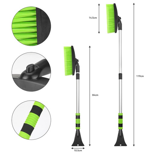 ✅ Obracana szczotka - szczotka wykonana z odpornego na niskie temperatury tworzywa sztucznego, co gwarantuje jej trwałość i niezawodność nawet w surowych warunkach zimowych.