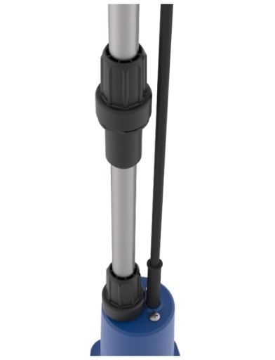 - Funkcje specjalne: Ochrona przed pracą na sucho, pompa automatycznie przełącza się na zakłócenia, gdy nie ma wody do pompowania. Wskaźnik stanu naładowania akumulatora, wymienny kurek odcinający akumulator, przyłącze pasujące do standardowych złączek węży, regulacja teleskopowa, głębokość zanurzenia między ok. 540 mm i ok. 1000 mm regulowana