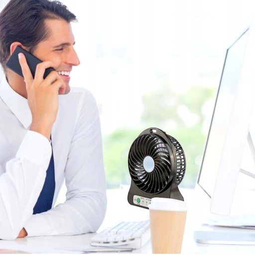 WIATRAK WENTYLATOR BIUROWY USB AKUMULATOR PRZENOŚNY NA BIURKO CICHY SOLIDNY