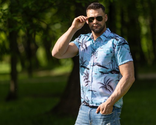 KOSZULA MĘSKA HAWAJSKA W PALMY KWIATY PLAŻA MORZE