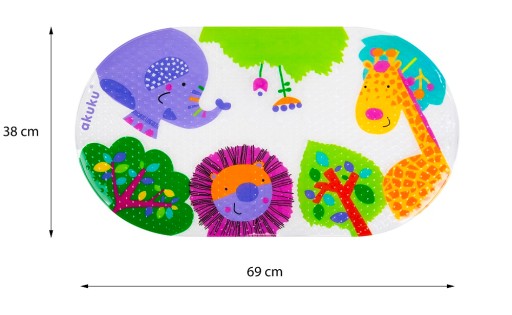 Mata antypoślizgowa marki „akuku” przeznaczona jest do użytku w wanience dziecięcej, wannie i kabinie prysznicowej. Zapewnia bezpieczeństwo podczas kąpieli. Kolorowy nadruk urozmaici codzienną pielęgnację.