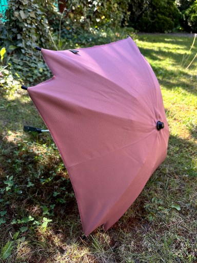 Poprzez zastosowanie specyficznej struktury materiału z której wykonana jest parasolka, zdjęcie nie oddaje jej rzeczywistego koloru. Proszę mieć na uwadze, że jest to parasolka wykonana z dokładnie takiej samej tkaniny jak wózek firmy Roan w tym kolorze.