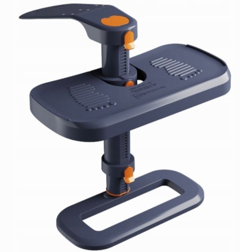 Najpierw zamocuj podest na stopy, a następnie płytę montażową. U starszych dzieci stopy zwykle ustawione są w poziomie i takie położenie będzie dla nich najwygodniejsze. Wraz ze wzrostem dziecka należy stopniowo obniżać położenie podestu, dopasowując go do długości nóg dziecka. Podnóżek posiada bardzo duży zakres regulacji wysokości, który wynosi aż 38 cm, co 0,7 cm.