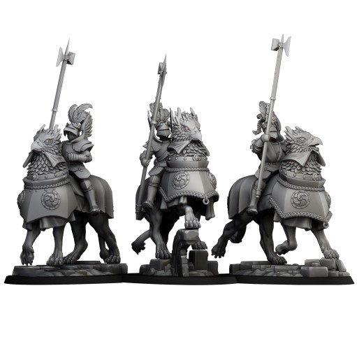 Przedmiotem oferty jest zestaw trzech modeli Knights of the Rising Sun od Highlands Miniatures, wydrukowanych na drukarce 3D w technologii SLA.