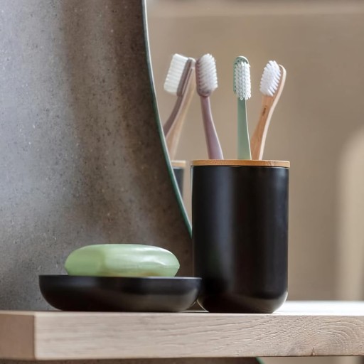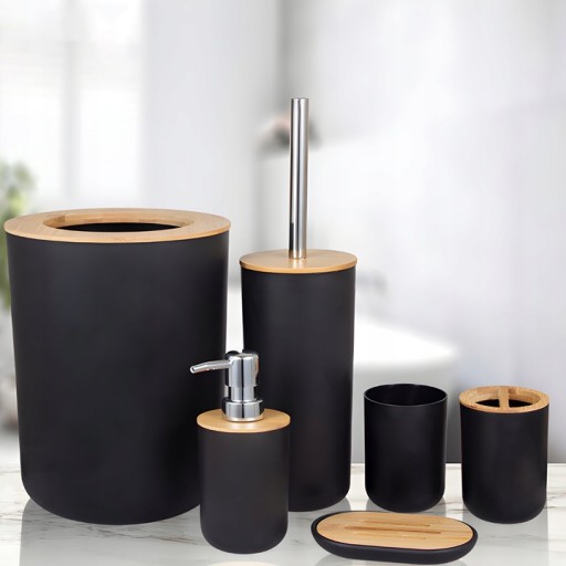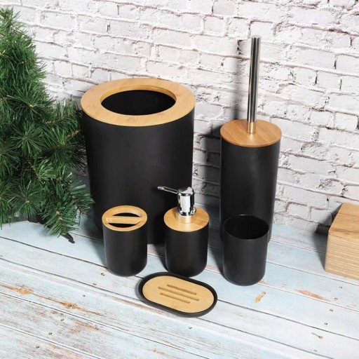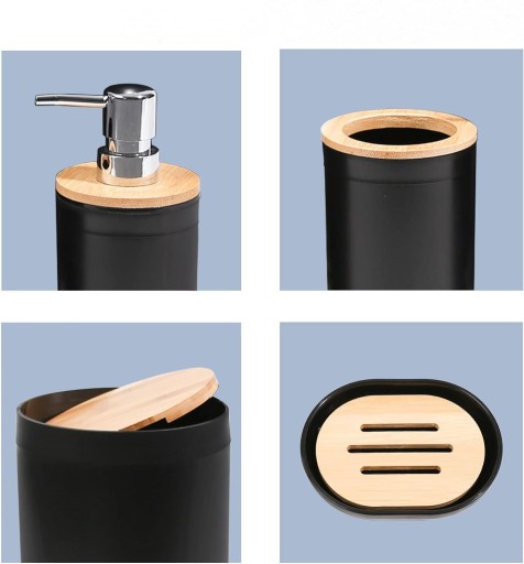 Eleganckie wzornictwo – Wyprodukowano z naturalnego drewna bambusowego i tworzywa ABS, lekka waga, ale trwała, nie pęka, wodoodporna konstrukcja sprawia, że są one długo w wilgotnym otoczeniu, aby zapewnić długotrwałą satysfakcję. Ten zestaw łazienkowy można elegancko wkomponować w każdą łazienkę i wnosi nowy styl i jakość.