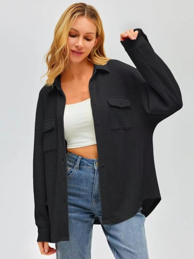 Женская рубашка с карманом, однотонная, повседневная