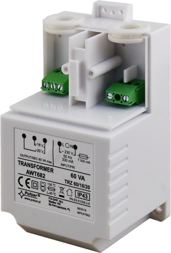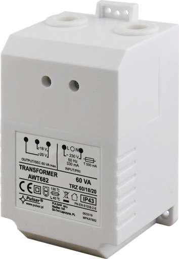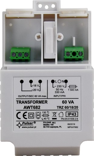 Napięcie zasilania: 230 V AC ; Napięcie wyjściowe: 18 V AC, 20 V AC ; Wydajność prądowa zasilacza: 3.3 A @ 18 V AC, 3 A @ 20 V AC ;