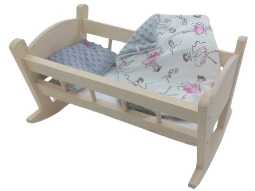 Urocza kołyska drewniana dla lalek, wykonana z drewna świerkowego.