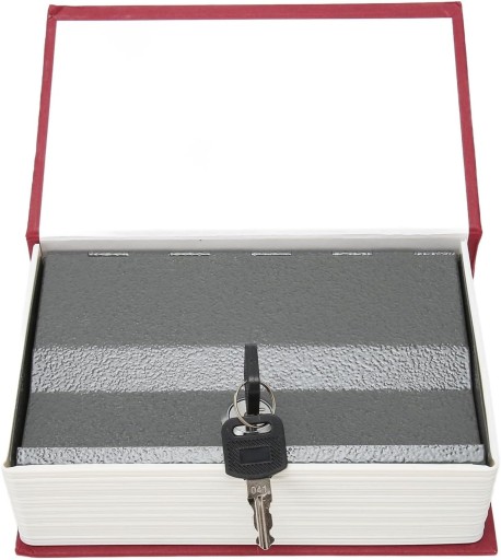 Łatwość obsługi: Ten kompaktowy sejf jest wyposażony w kluczowy mechanizm zamykania i otwierania. Klucz jest nie tylko solidny, ale też zapewnia dodatkową warstwę bezpieczeństwa. Mechanizm zamka jest dyskretnie umieszczony wewnątrz, co sprawia, że produkt wygląda jak zwykła książka, a otwarcie go jest równie proste jak przewrócenie strony.