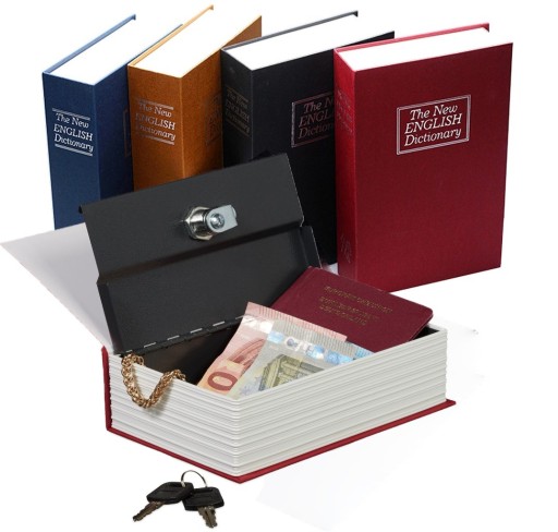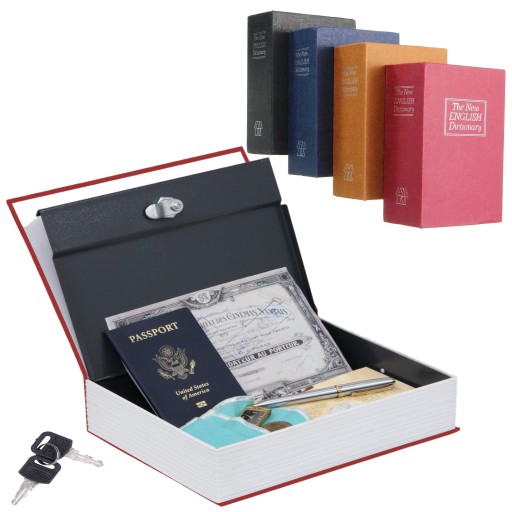 Intrygujące rozwiązanie dla przechowywania biżuterii i innych cennych przedmiotów. Nasz sejf w formie książki jest idealny do dyskretnej ochrony Twoich skarbów. Pasuje doskonale do każdej biblioteczki lub kolekcji książek, sprawiając, że przechowywanie cennych rzeczy staje się zarówno bezpieczne, jak i stylowe, zarówno w domu, biurze, jak i w podróży. Jego niezwykła imitacja książki sprawia, że na pierwszy rzut oka trudno go odróżnić od prawdziwego słownika.