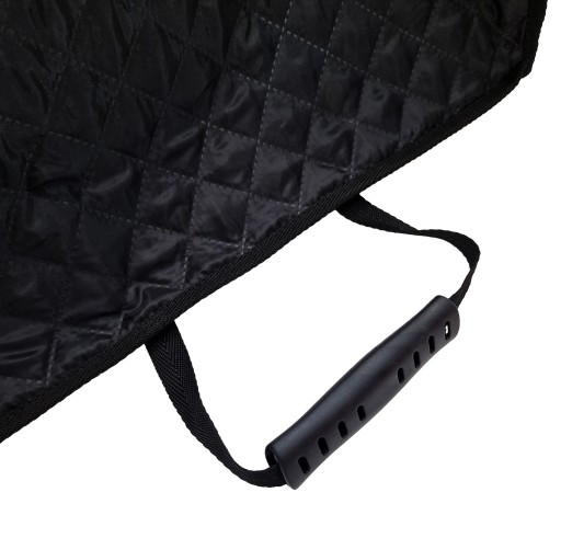 Mata ochronna dla zwierzaka kolor szary z motywem łapek np. psa lub kota. Dzięki jej użyciu unikniemy zabrudzenia tapicerki w samochodzie przez naszego pupila. Dodatkowo mata może znaleźć zastosowanie do przewozu np. zakupów lub innych zabrudzonych rzeczy. Została ona wykonana z wodoodpornych materiałów oxfordu pikowanego oraz codury. Dodatkowo ścianki maty zostały usztywnione pianką o grubości 5mm dzięki czemu zachowują swój kształt i nie opadają. Po rozsunięciu zamków ścianki maty można wywinąć w dół i utworzy ona ochronę dla całego fotela co pozwoli na korzystanie z maty w formie pokrowca na fotel. Mata jest montowana w bardzo prosty sposób posiada dwa regulowane zapięcia. Pierwsze jest mocowane na zagłówku fotela drugie na dole oparcia fotela. Dodatkowo zastosowany został uchwyt który należy przełożyć w miejscu łączenia siedziska z oparciem dzięki niemu mata będzie się trzymała jeszcze stabilniej. Materiały użyte przy produkcji są wytrzymałe grube i wystarczy wilgna szmatka do przetarcia aby mata była znów jak nowa. Produkt może być mocowany zarówno na przedni fotel jak i na tylną kanapę.