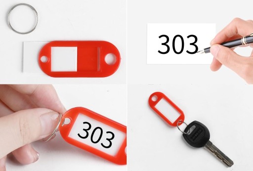 Za pomocą zawieszki do kluczy z identyfikatorem można również oznaczyć szybko zestawy otwierające drzwi w pokojach hotelowych i motelach, a także klucze do szafek w zakładach pracy, szkołach.