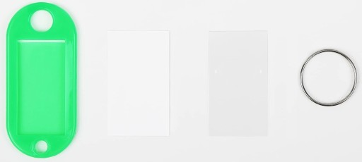 - Zestaw zawiera: 100 sztuk zawieszek z etykietami i pierścieniami do kluczy.