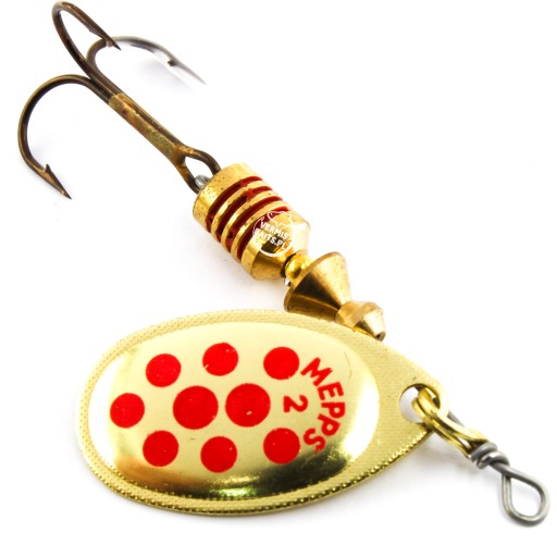 Obrotówka Mepps AGLIA złota czerwone kropki nr 2