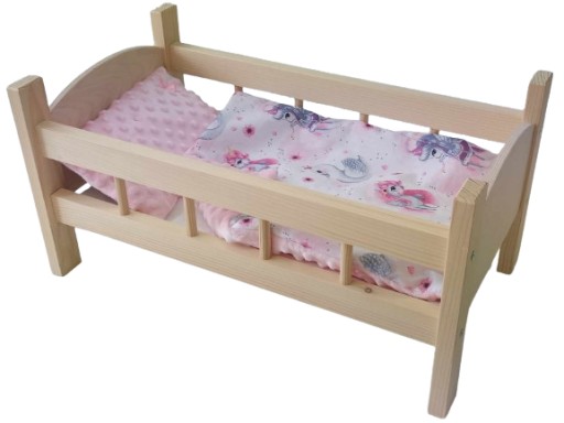 ŁÓŻECZKO DREWNIANE dla lalek DUŻE Z POŚCIELĄ