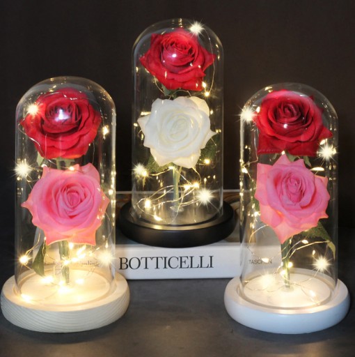 Żywa róża cięta zwiędnie po kilku dniach, a ta nie, a w dodatku ma piękne oświetlenie i przeźroczystą kopułę szklaną - dzięki temu stworzy na zawsze piękny nastrój w pokoju !