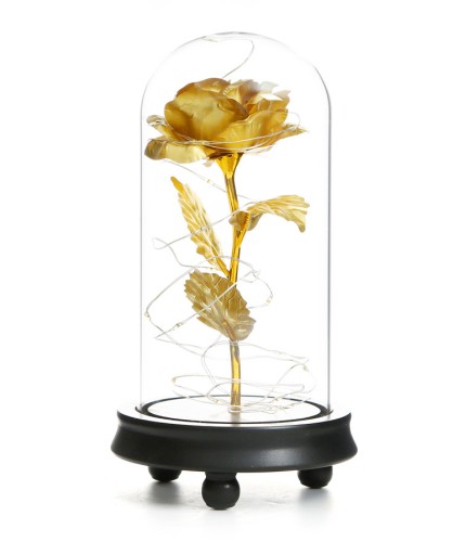 ЗОЛОТАЯ ИСКУССТВЕННАЯ ВЕЧНАЯ РОЗА В СТЕКЛЕ ПОДСВЕТКА ПОДАРОК НА ДЕНЬ РОЖДЕНИЯ ДЛЯ НЕЕ