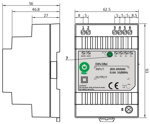 БЛОК ПИТАНИЯ СВЕТОДИОДНОГО ИНТЕРКОМА НА DIN-РЕЙКУ 24В/1,25А пластик DIN30W24