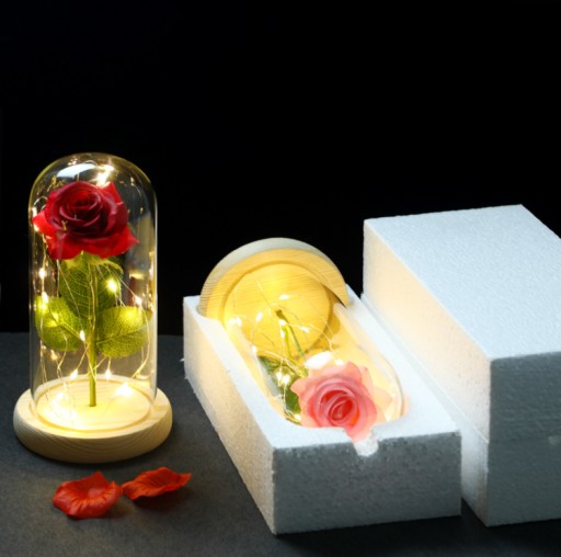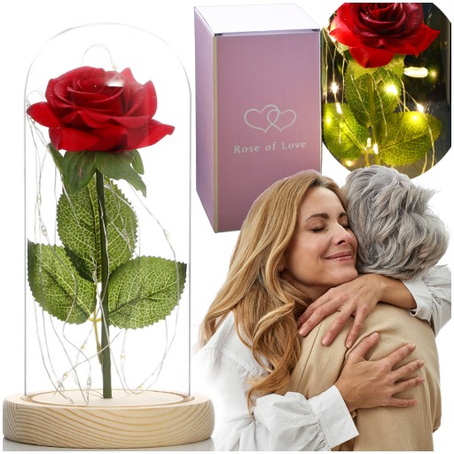 Żywa róża cięta zwiędnie po kilku dniach, a ta nie, a w dodatku ma piękne oświetlenie i przeźroczystą kopułę szklaną - dzięki temu stworzy na zawsze piękny nastrój w pokoju !