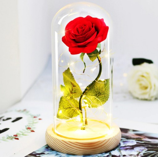 PIĘKNA I BESTIA SZTUCZNA WIECZNA RÓŻA W SZKLE PREZENT NA IMIENINY DLA NIEJ