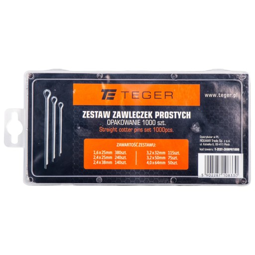 Zawleczki Proste 1000szt. zestaw TEGER jest to produkt fabrycznie nowy i dostępny w sklepie Mizar.