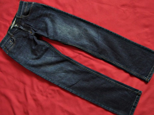 Rozmiar: z metkiW33L34-;szerokość w pasie- 43cm. ;dł. całkowita-112cm;dł.nogawki od kroku-86cm;wysokość stanu(przód)-27cm;szerokość w udzie na wysokości kroku-31cm;szerokość dołu nogawki-19cm.