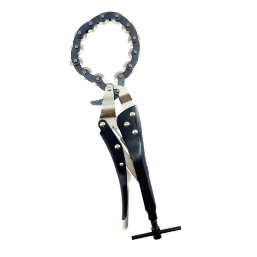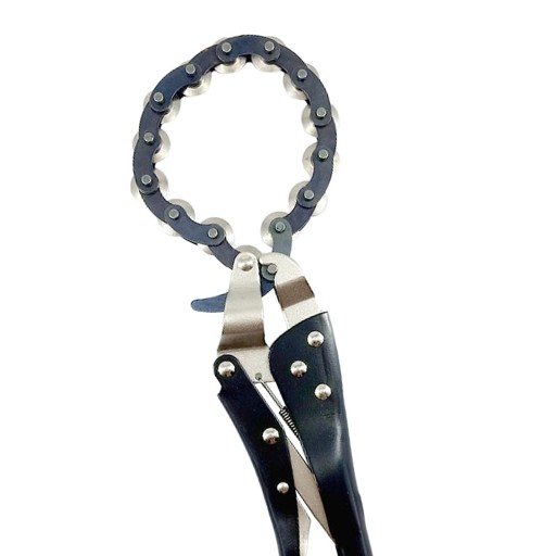 WYGODNY W UŻYCIU: Owiń łańcuch wokół rury, zamknij szczękę szczypiec, aż kółka obcinaka do rur będą mocno przylegać do rury, ręcznie obróć łańcuch wokół rury.