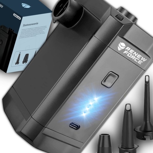 Jej kompaktowe rozmiary pozwalają na wygodne przechowywanie, a trzy różne końcówki umożliwiają nadmuchiwanie różnych dmuchanych akcesoriów. Solidna konstrukcja gwarantuje długą żywotność, a ładowanie poprzez USB Typ-C to dodatkowa wygoda.