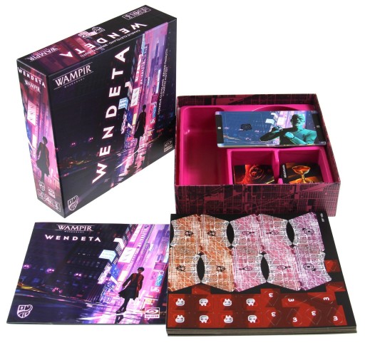 Wampir: Maskarada Wendeta to asymetryczna rywalizacyjna gra karciana opierająca się na strategii, blefie i dedukcji, zaprojektowana przez uznanych twórców gier planszowych Charliego Clevelanda oraz Bruno Faiduttiego. Od 3 do 5 graczy wcieli się w spiskujące wampiry walczące w różnych dzielnicach miasta o poparcie wpływowych popleczników, by ostatecznie zawładnąć tronem Chicago.