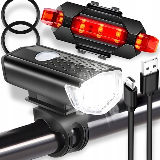 LAMPKA ROWEROWA ŚWIATŁO PRZÓD I TYŁ NA KIEROWNICĘ ZESTAW MOCNA