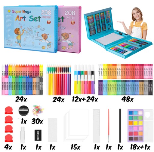 Odkryj pełen potencjał kreatywny dla Twojego dziecka dzięki naszemu kompletnemu zestawowi artystycznemu! Zawierający 208 elementów, w tym tablicę i walizkę, nasz zestaw zachęca dzieci do eksploracji sztuki i wyrażania swojej wyobraźni.