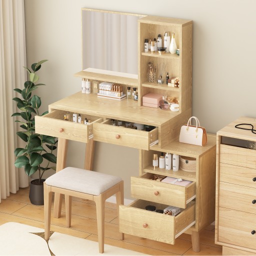 Stolik do makijażu z lustrem, stolik z drewna, toaletki z 4 szufladami